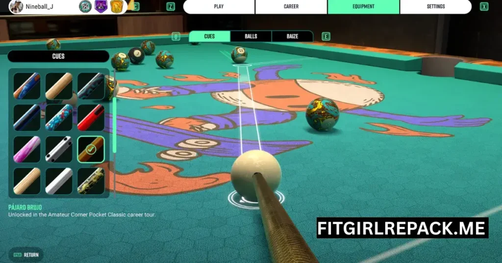 - Multiple Game Modes: Play Eight-Ball, Nine-Ball, snooker, solo challenges, or online multiplayer.